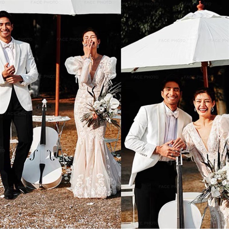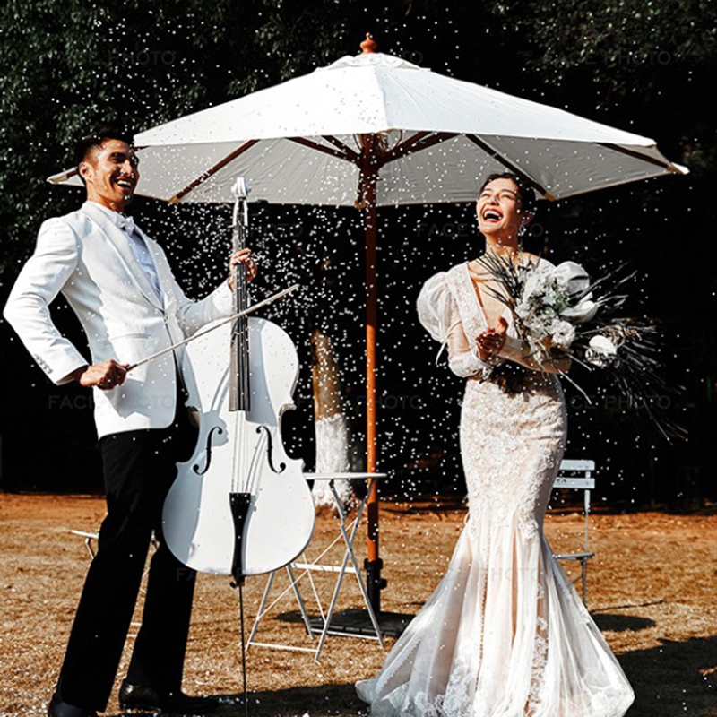 现货速发新款婚纱道具户外白色遮伞三亚海边时尚摄影旅拍大提琴桌
