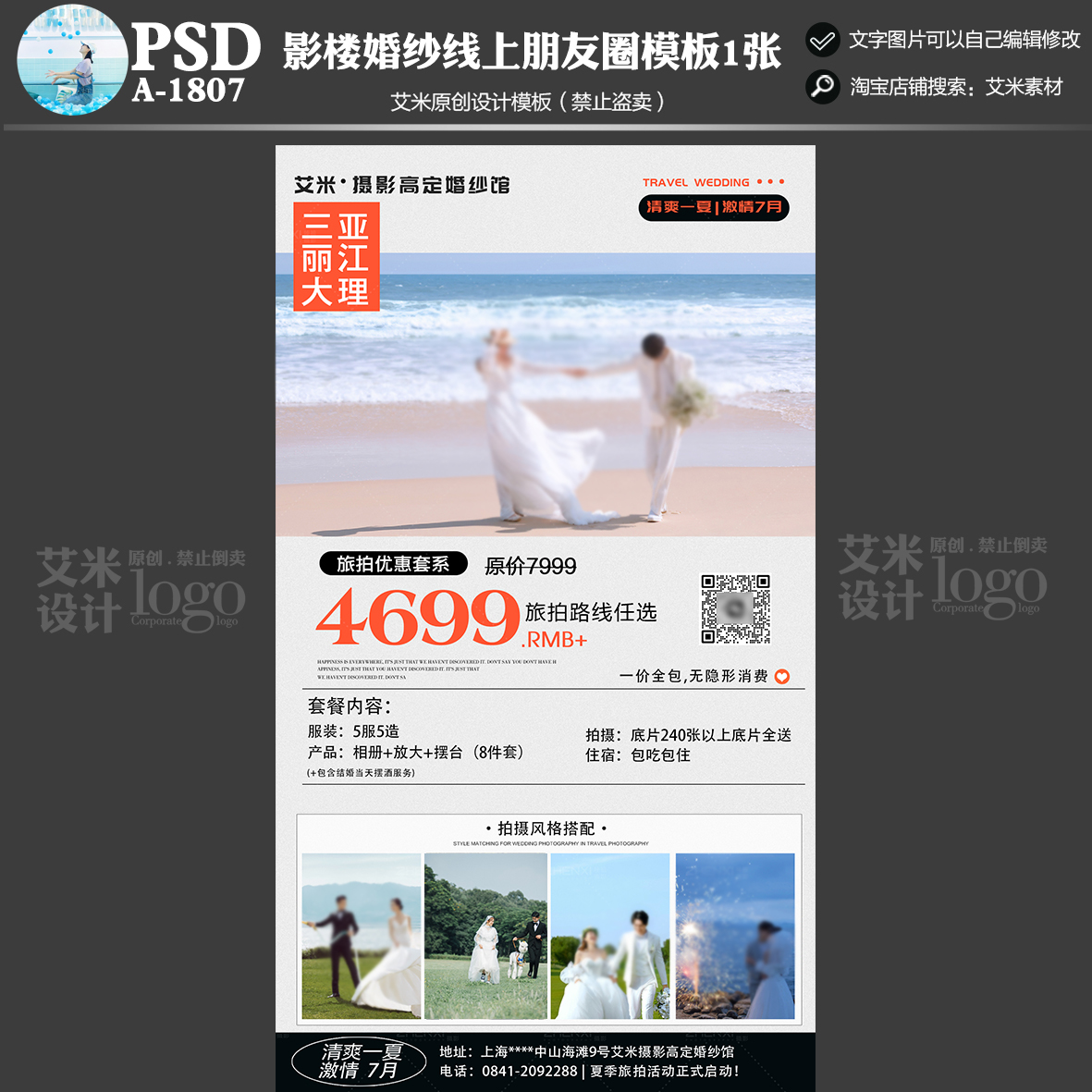 2025影楼A-1807婚纱摄影三亚全球旅拍朋友圈线上活动模板方案素材
