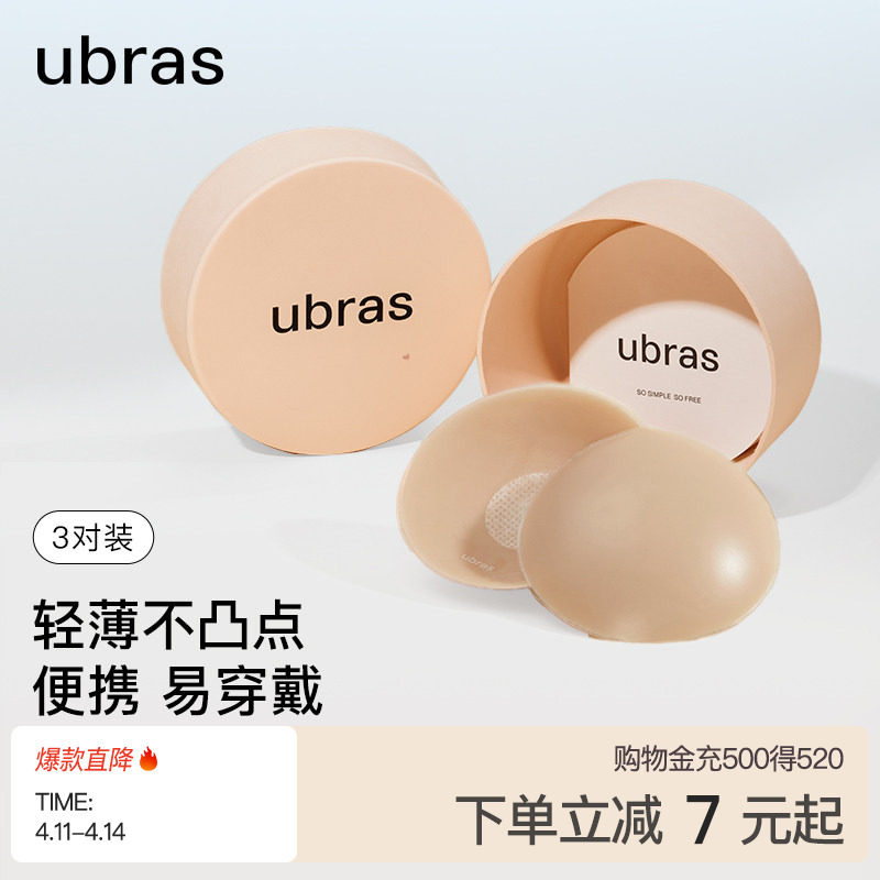 ubras果冻硅胶乳贴女婚纱用防走光隐形防凸点胸贴轻薄内衣3对装