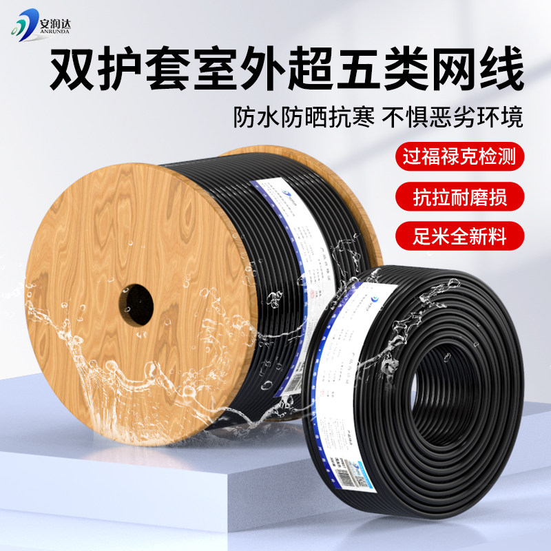 室外网线纯铜超五类双屏蔽家用监控超六类千兆高速户外防水双绞线