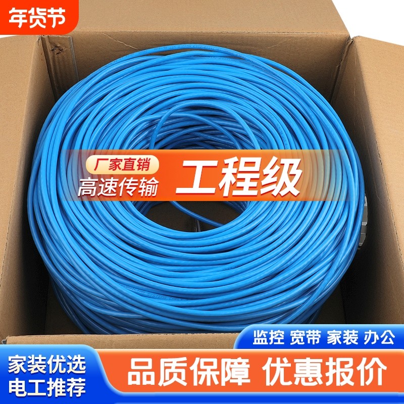 纯铜超五类六类千兆网线家用poe监控6类网络线无氧铜300m整箱室外