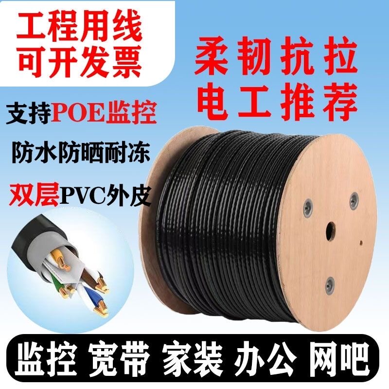 室外超六类千兆纯铜八芯双绞网线户外POE监控路由室外专用网线