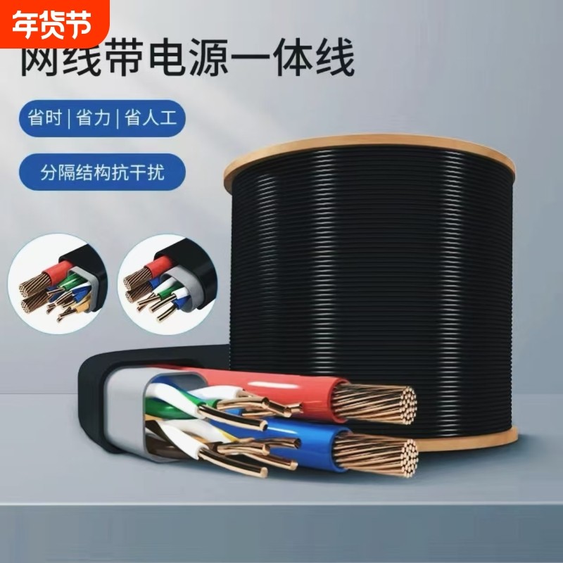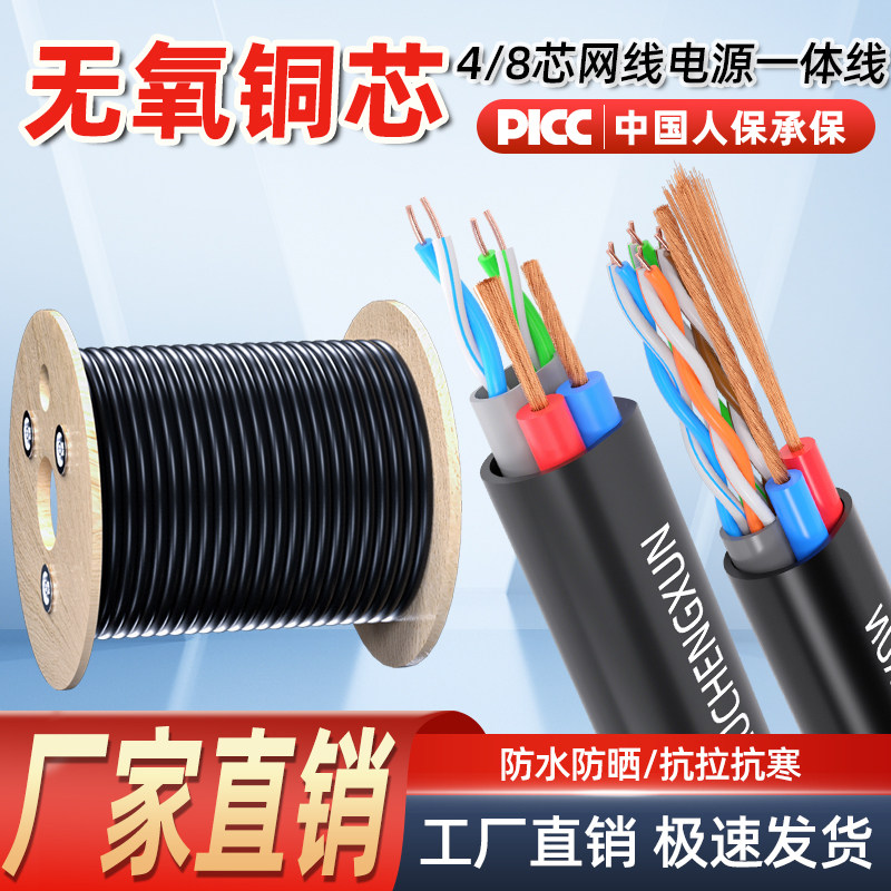纯铜室外4芯8芯监控网线带电源一体综合线二合一poe供电通用网线