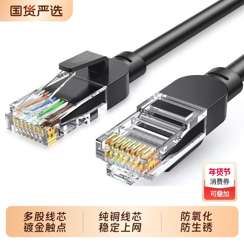 安纯铜网线家用超六类千兆高速成品电脑路由器监控网络线室外室内