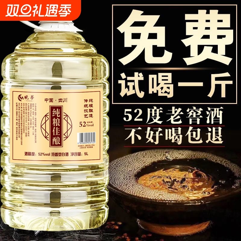 四川纯粮食桶装白酒52度足5.5L高粱原浆老酒泡酒浓香型60度赠试饮
