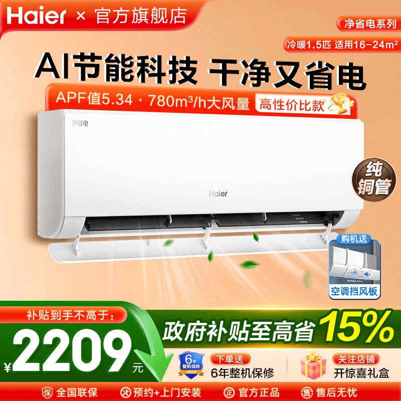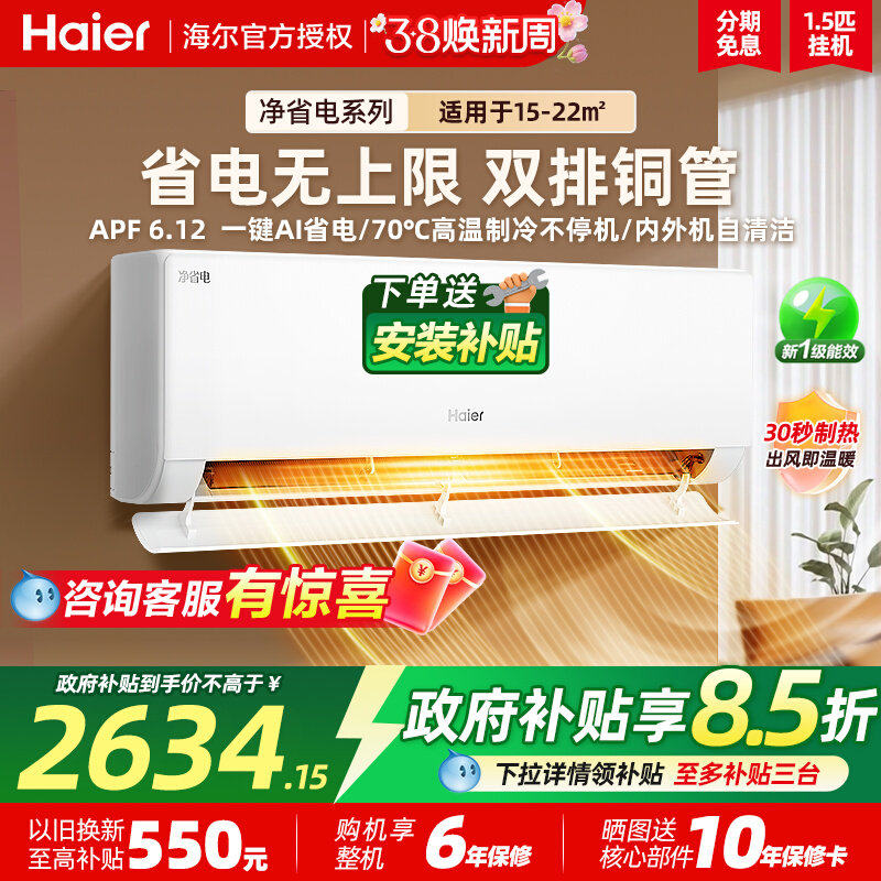 换新补贴海尔空调挂机1.5匹冷暖一级能效家用壁挂式E1变频旗舰店