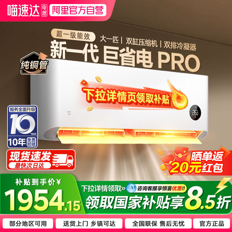 小米巨省电空调挂机冷暖两用1.5匹1匹一级能效变频家用智能壁挂式