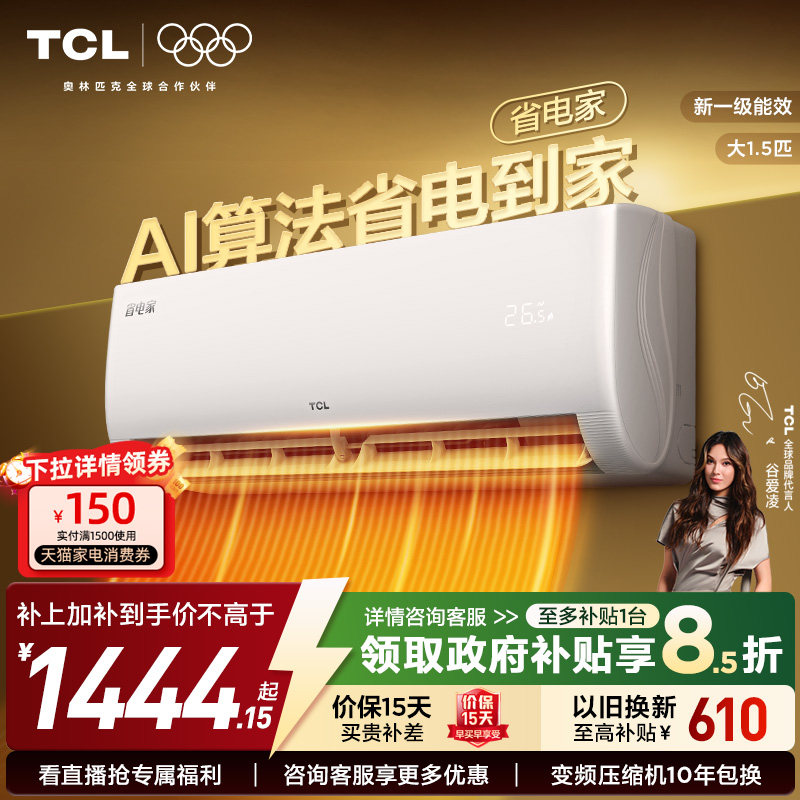 【新品】TCL空调省电家大1.5匹1匹挂机变频冷暖新一级壁挂式