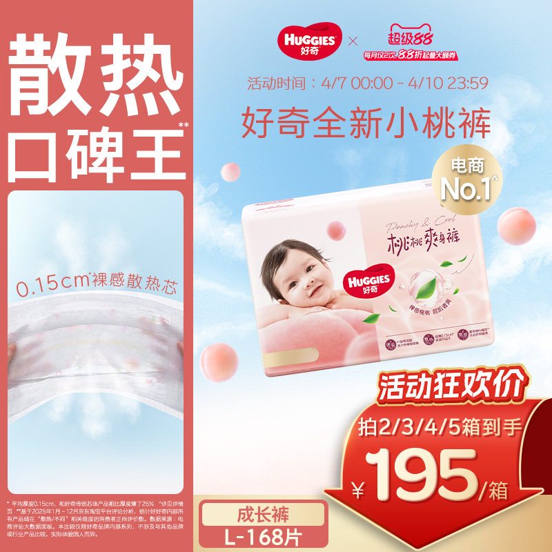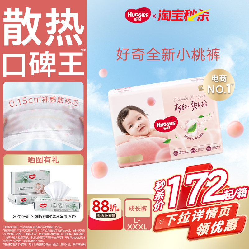 【散热口碑王】好奇小桃裤官方自营纸尿裤拉拉裤L-3XL婴儿尿不湿