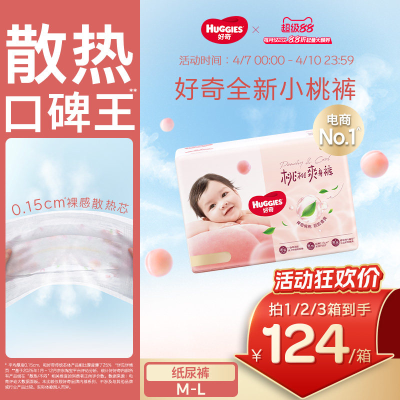 【散热口碑王】好奇小桃裤铂金装婴儿纸尿裤M-L尿不湿亲肤官方