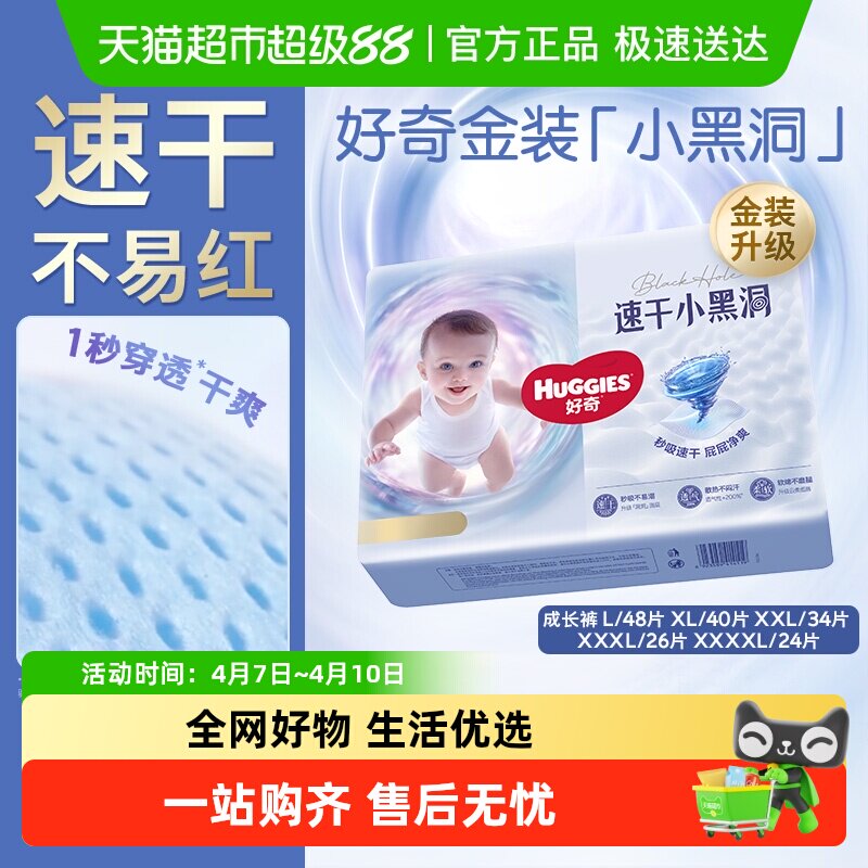 【速干不易红】好奇官方自营金装小黑洞拉拉裤L-3XL婴儿尿不湿