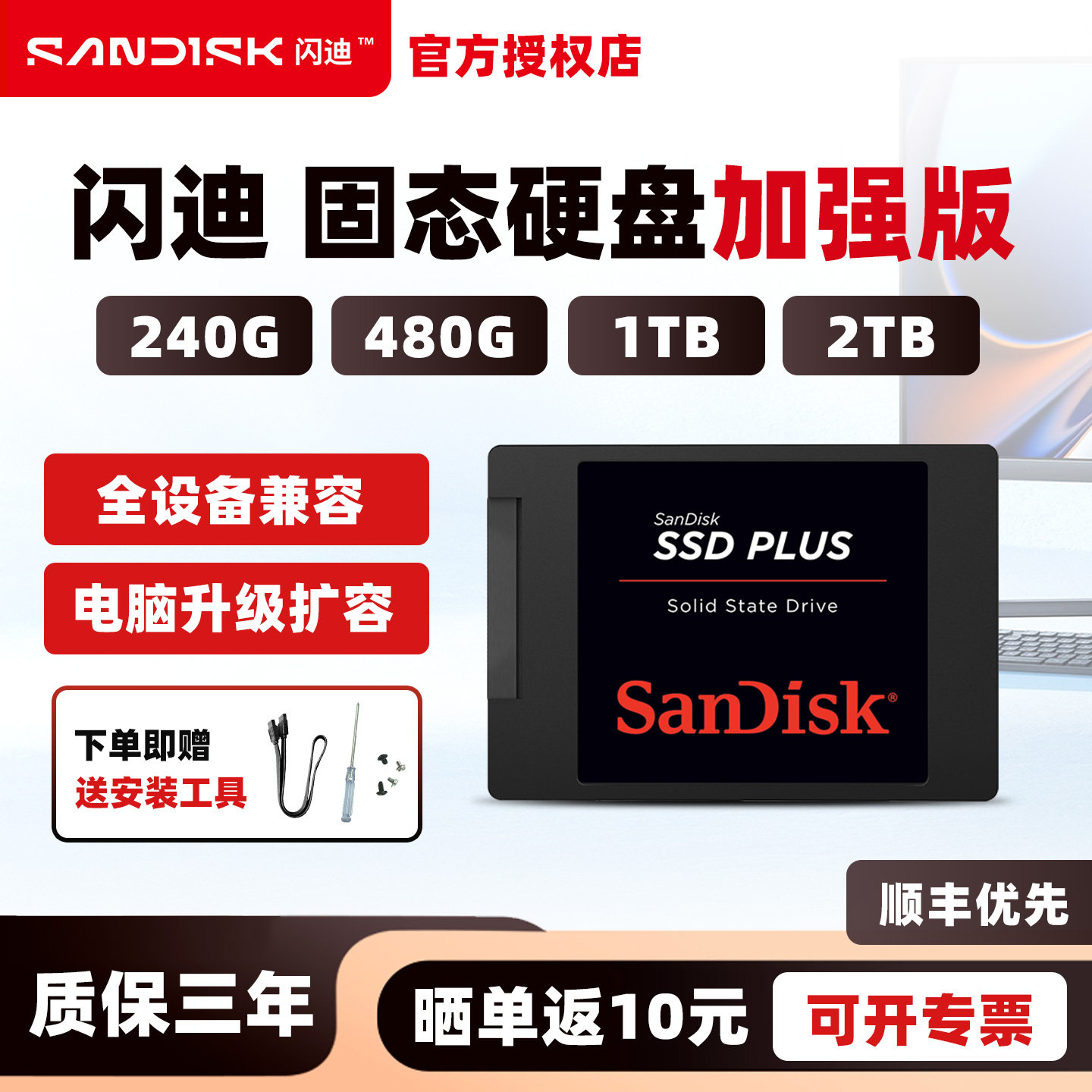 闪迪固态硬盘240g 500g 1t 2t笔记本台式机电脑ssd通用sata3接口