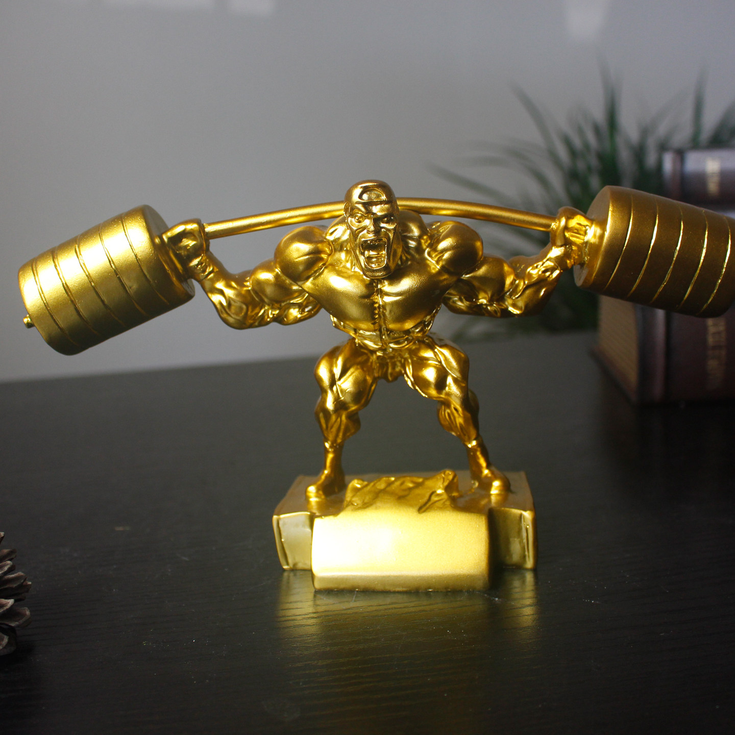力量举哑铃办公室桌面摆件装饰品肌肉金色男性手办模型健身工艺品