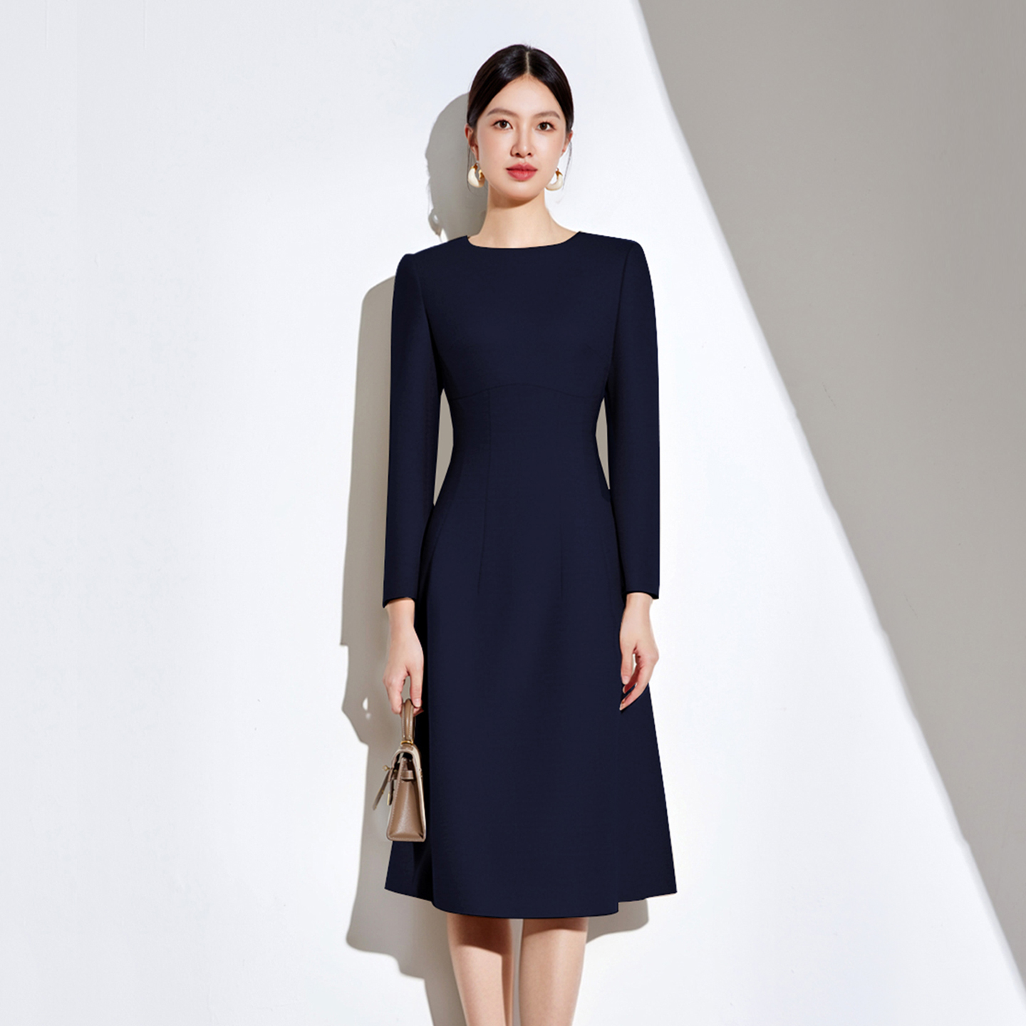 藏青西装连衣裙女春秋新款收腰职业装时尚女神范主持人上镜正装裙