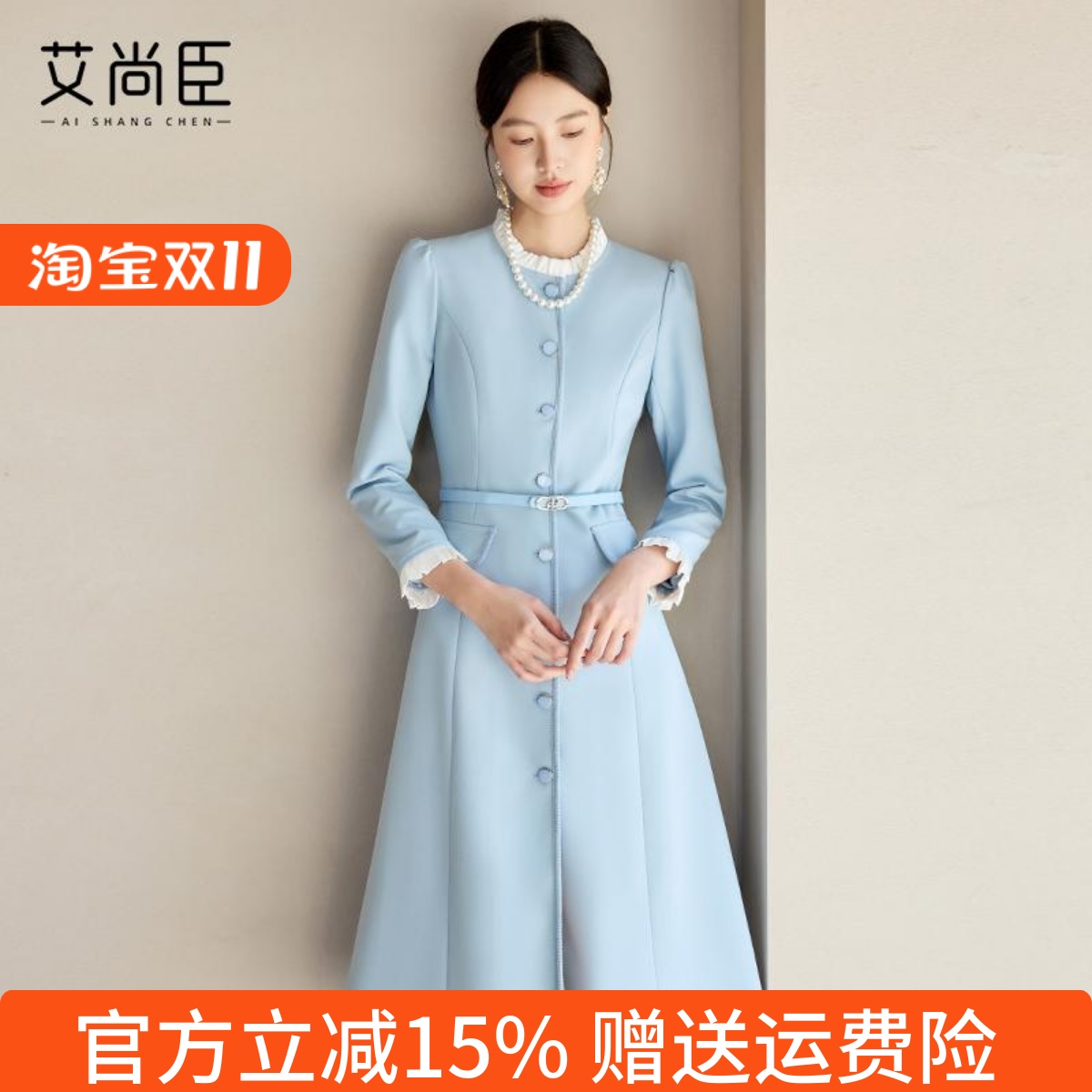 菲梦伊重工绣花西装连衣裙女长袖秋季商务通勤职业正装气质中长裙