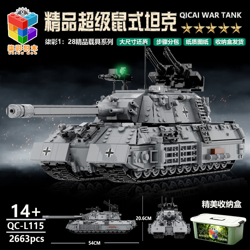 柒彩创意MOC精品军事二战德军超级鼠式坦克搭建囊鼠积木收藏模型