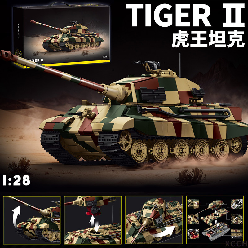 二战德国虎王坦克积木拼装军事模型履带装甲车益智玩具男生日礼物