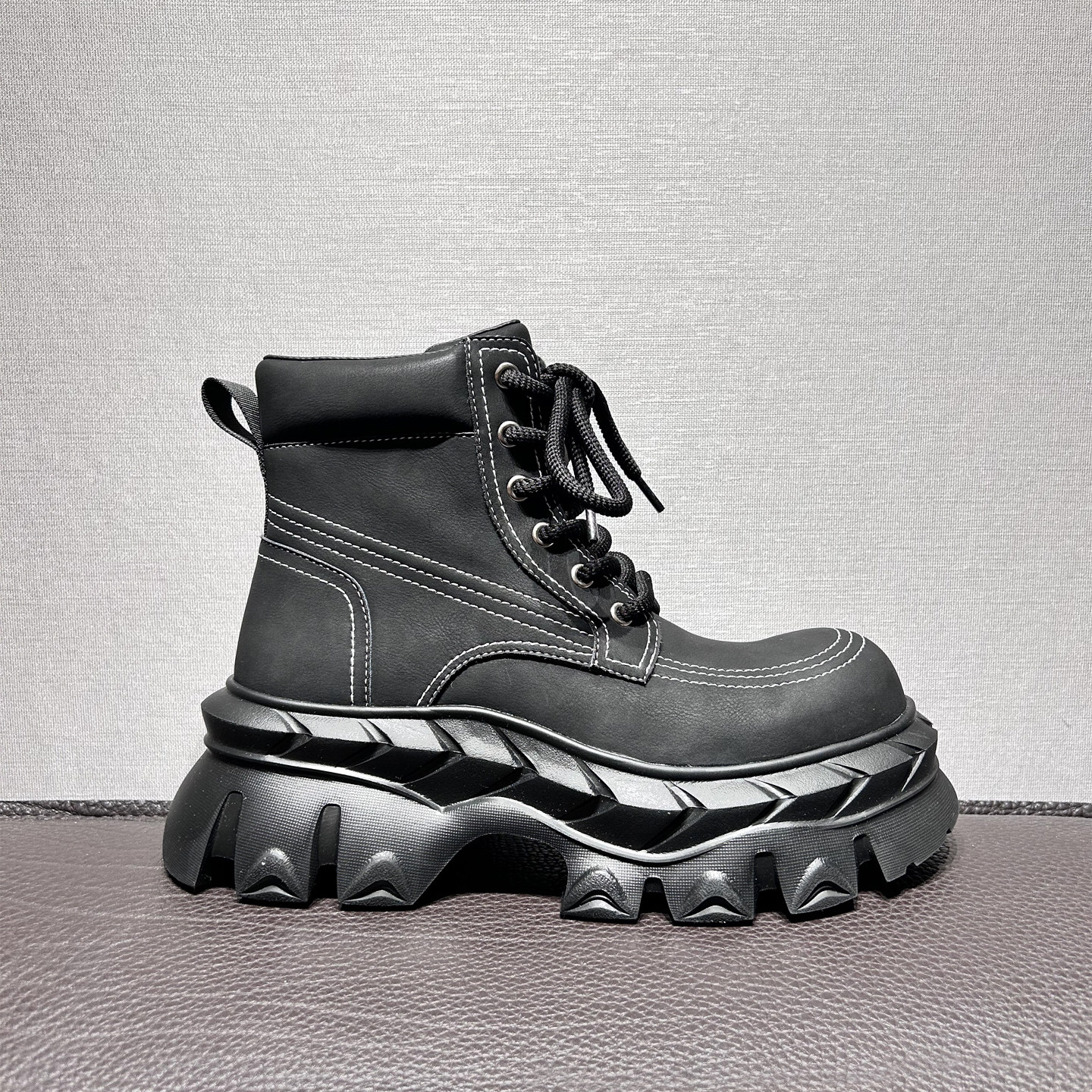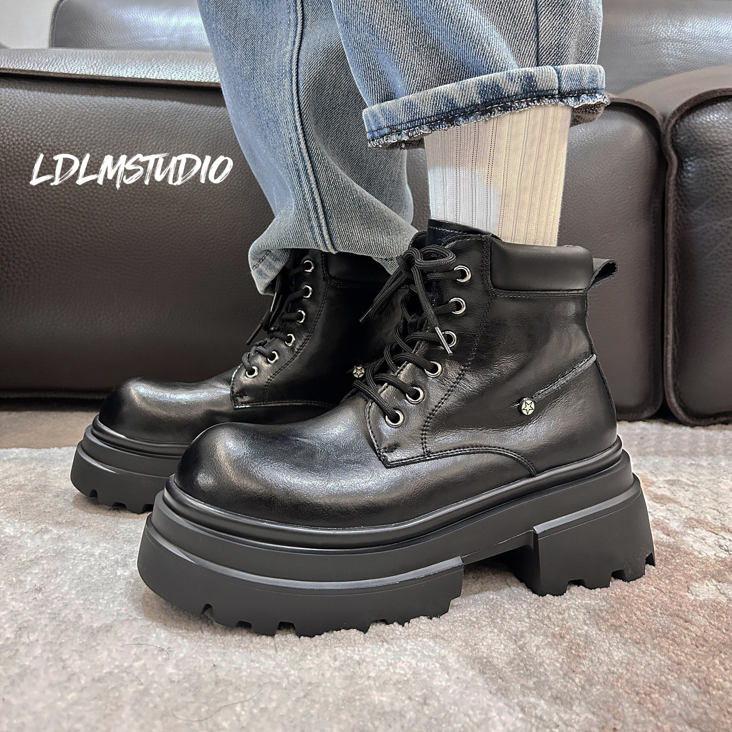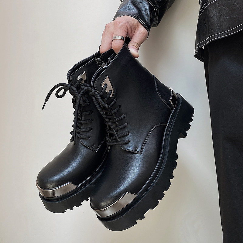 7cm隐形增高马丁靴男黑色cleanfit大头短靴休闲厚底高级感工装靴
