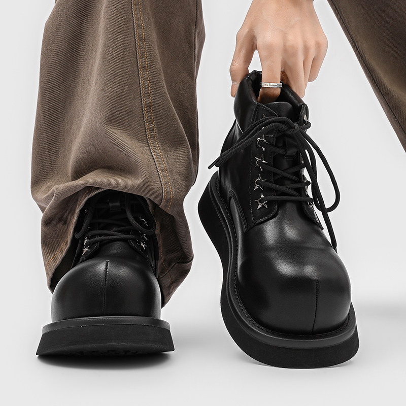 MRA德比鞋男款圆头大头鞋黑色工装鞋通勤马丁靴厚底增高休闲皮鞋