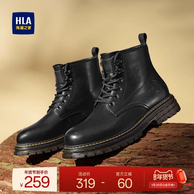 HLA/海澜之家男鞋新款秋冬马丁靴男黑色潮流工装靴英伦风男靴靴子