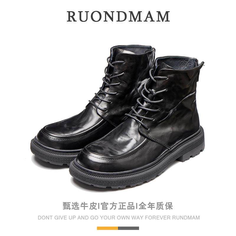 RUONDMAM真皮马丁靴男黑色高帮英伦风复古工装靴男秋冬厚底机车靴