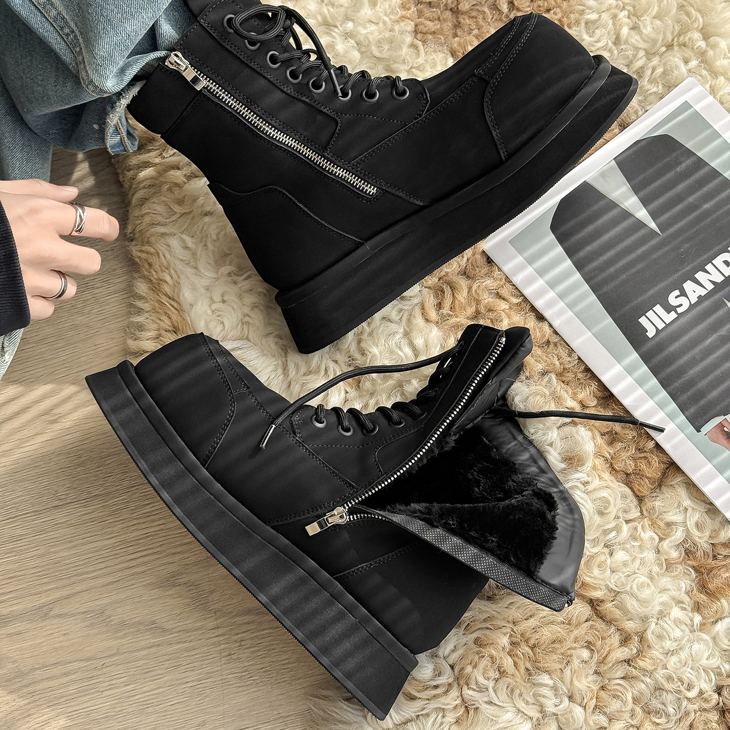 - 马丁靴男款加绒英伦