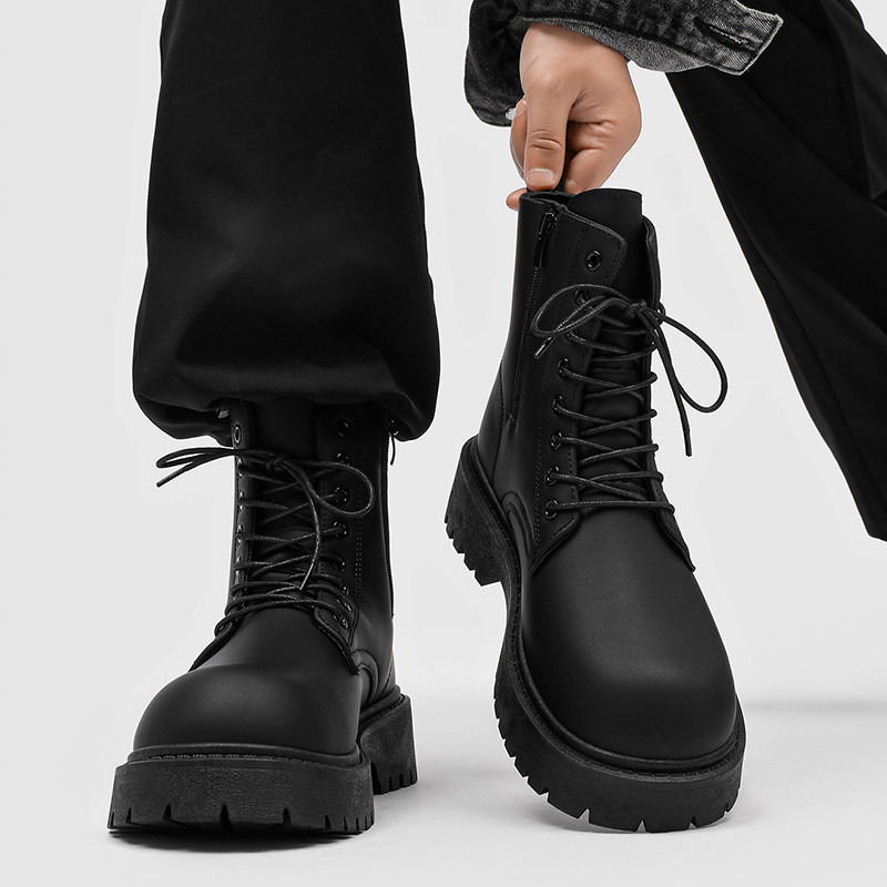 英伦风厚底马丁靴男黑色高帮鞋户外骑行机车靴学院风潮流工装短靴