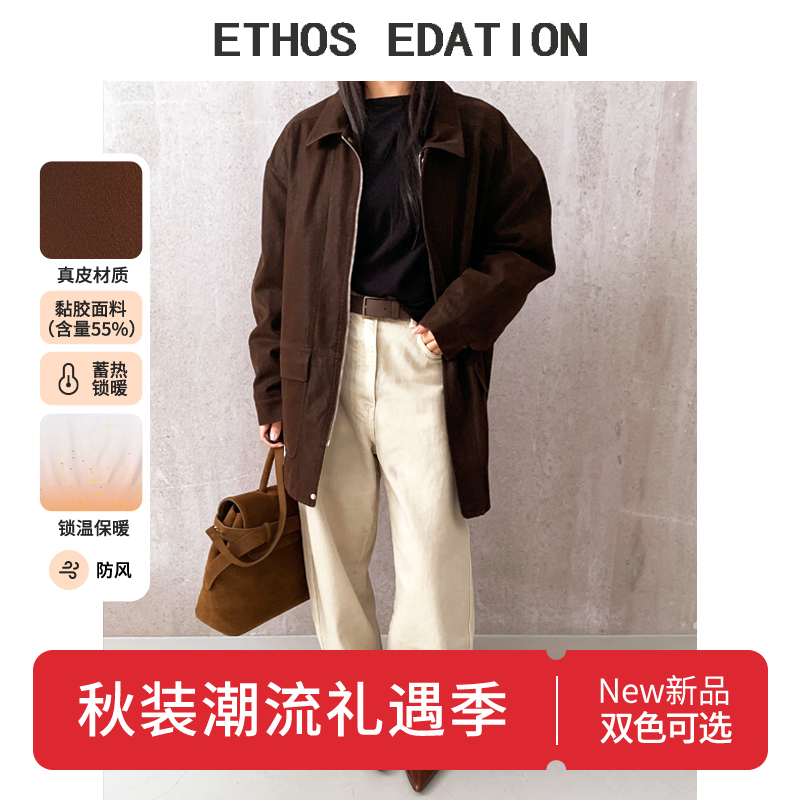 老钱风高端反绒羊皮休闲宽松真皮皮衣外套女2025新款廓形皮夹克