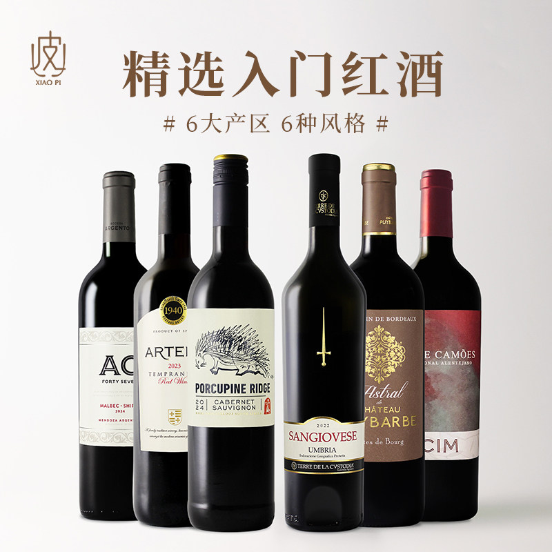 入门口粮组合!法国/意大利/西班牙/葡萄牙/阿根廷/南非干红6支