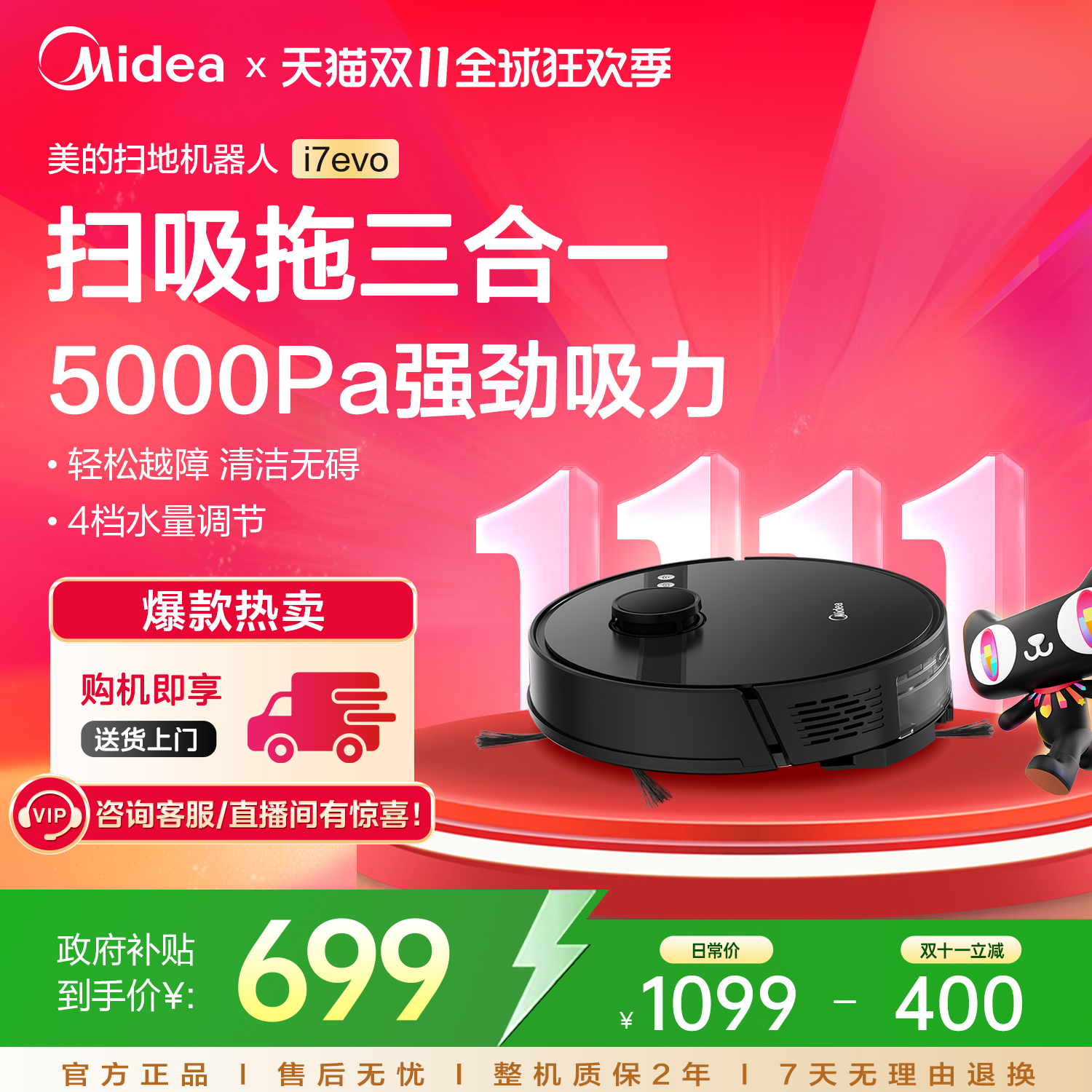 【补贴15%】美的i7evo全自动扫拖一体机器人家用智能扫地机器人