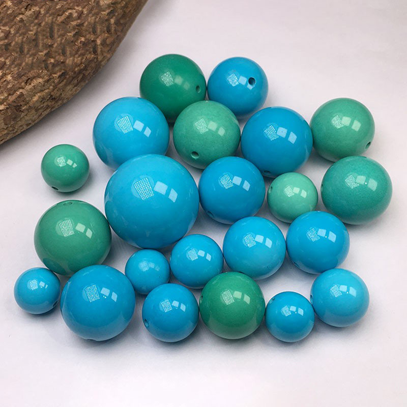 原矿绿松石散珠高瓷蓝无优化圆珠回纹顶珠配饰果冻料单珠手串配珠