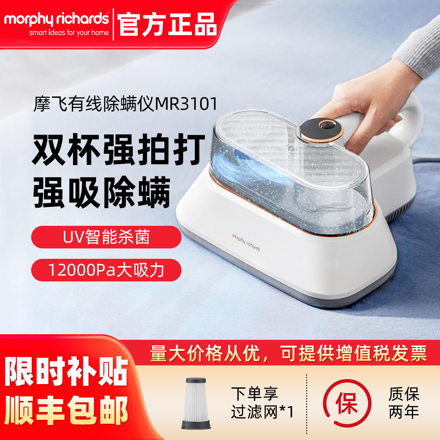 【折扣价】摩飞除螨仪MR3101家用床单床铺清理吸螨虫吸尘器一机多