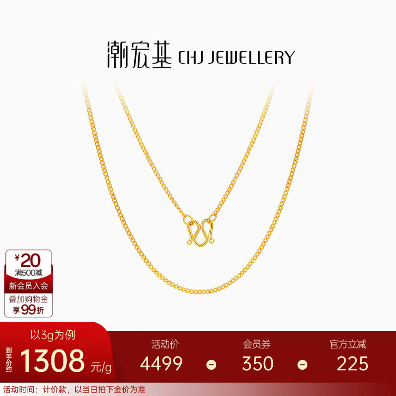 潮宏基心细呵护足金侧身链女黄金细项链配链素链百搭礼物 计价 H
