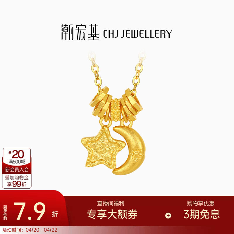 潮宏基陨石星星足金项链古法黄金坠链盘缠金礼物女结婚新年 计价