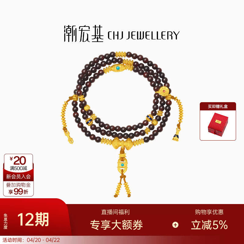 潮宏基臻金梵华黄金项链108珠手链鎏彩小叶紫檀文玩高级感礼物卟