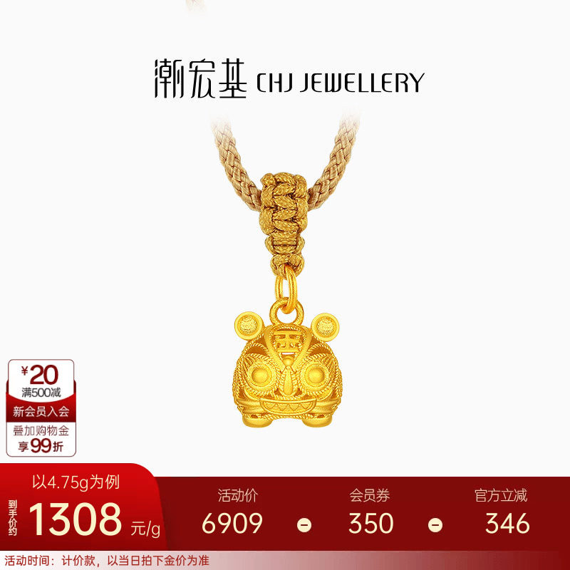潮宏基传家宝布老虎足金项链古法黄金坠链套链吊坠宝宝周岁礼计价