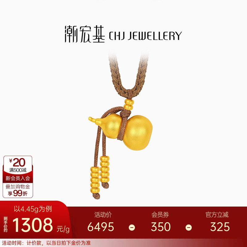 潮宏基臻金弘足金项链5G拉丝黄金坠链丝绒葫芦钱币礼物新年 计价