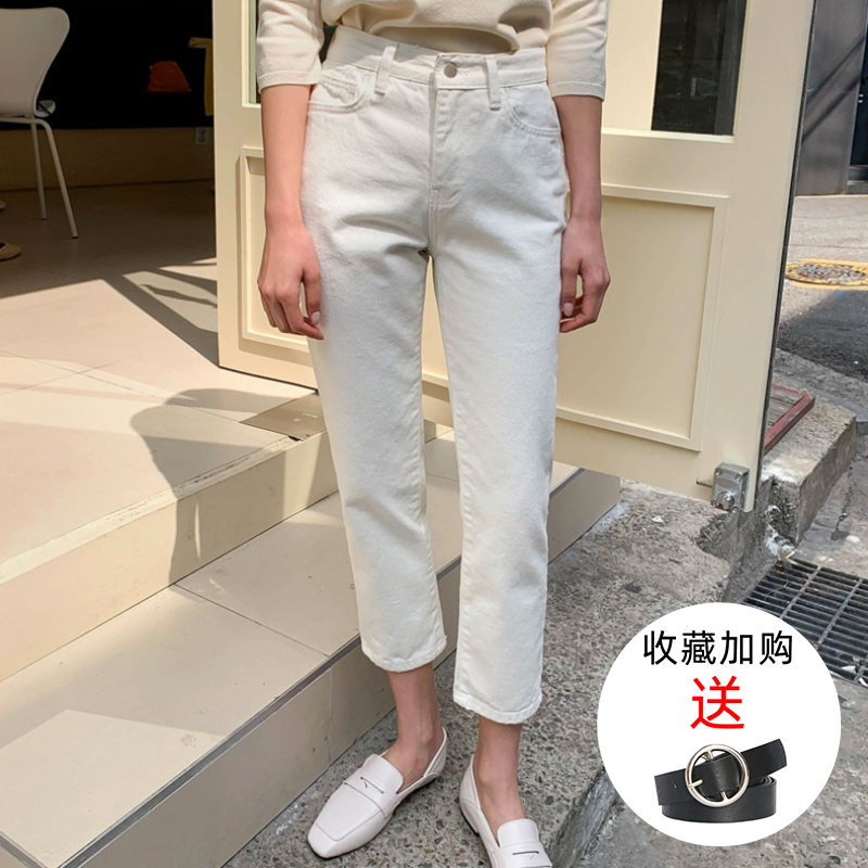 米白色直筒牛仔裤女2025春秋新款八分小个子高腰宽松显瘦烟管九分