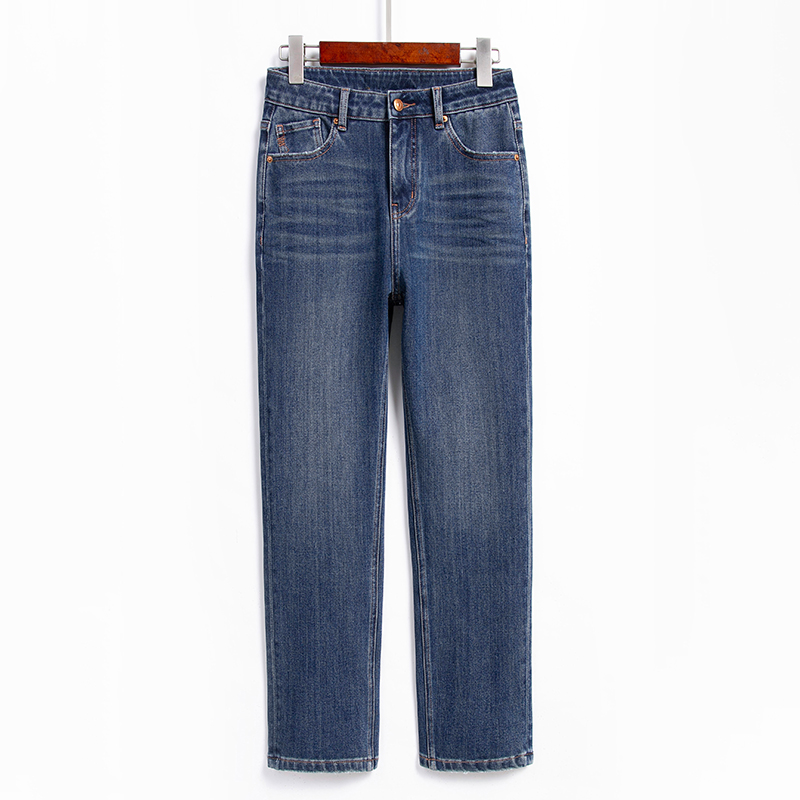 百斯盾官方【复合绒】女装牛仔裤秋冬季款保暖九分铅直筒裤00224
