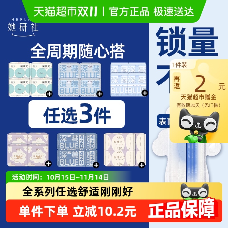 【任选5件】她研社深藏Blue卫生巾安睡裤防漏姨妈巾干爽不粘透气