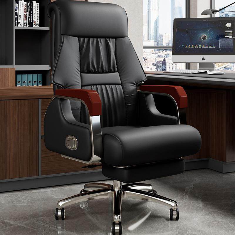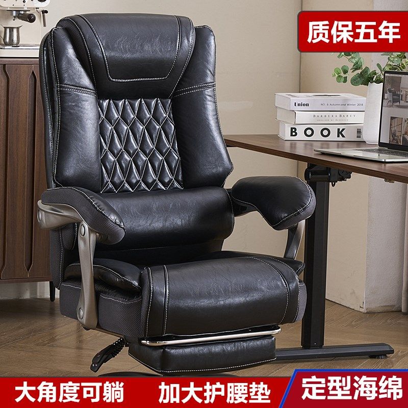 皮质老板椅电脑椅家用办公舒适久坐可躺老板椅书房椅子商务沙发座