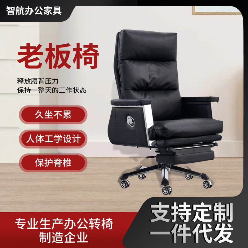 豪华老板椅电脑椅家用办公椅可躺旋转带脚踏人体工学转椅厂家批发