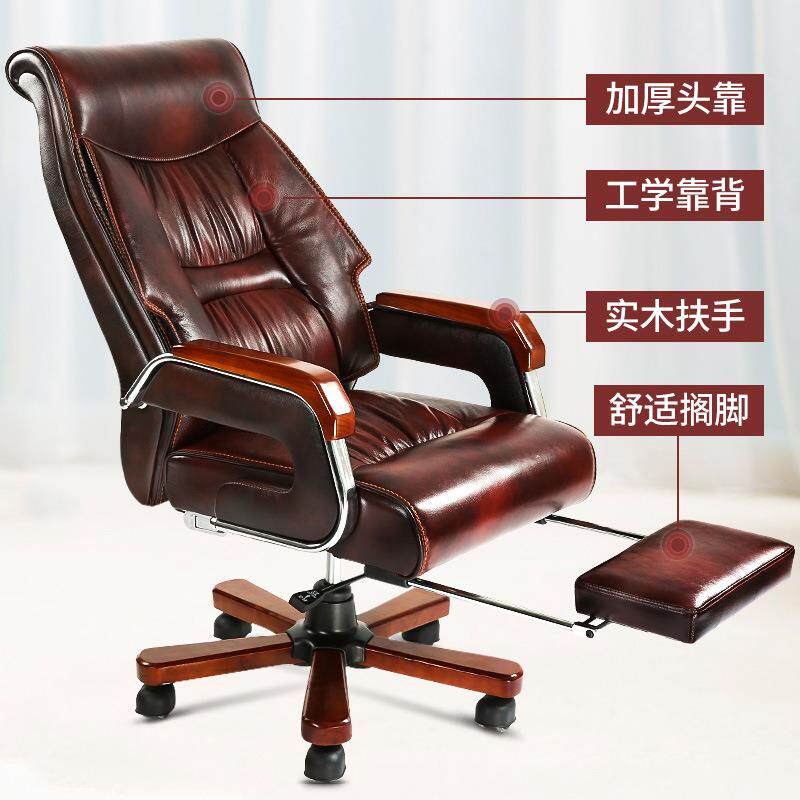 真牛皮老板椅电脑椅家用人体工学按摩椅大班椅可躺老板椅办公椅子