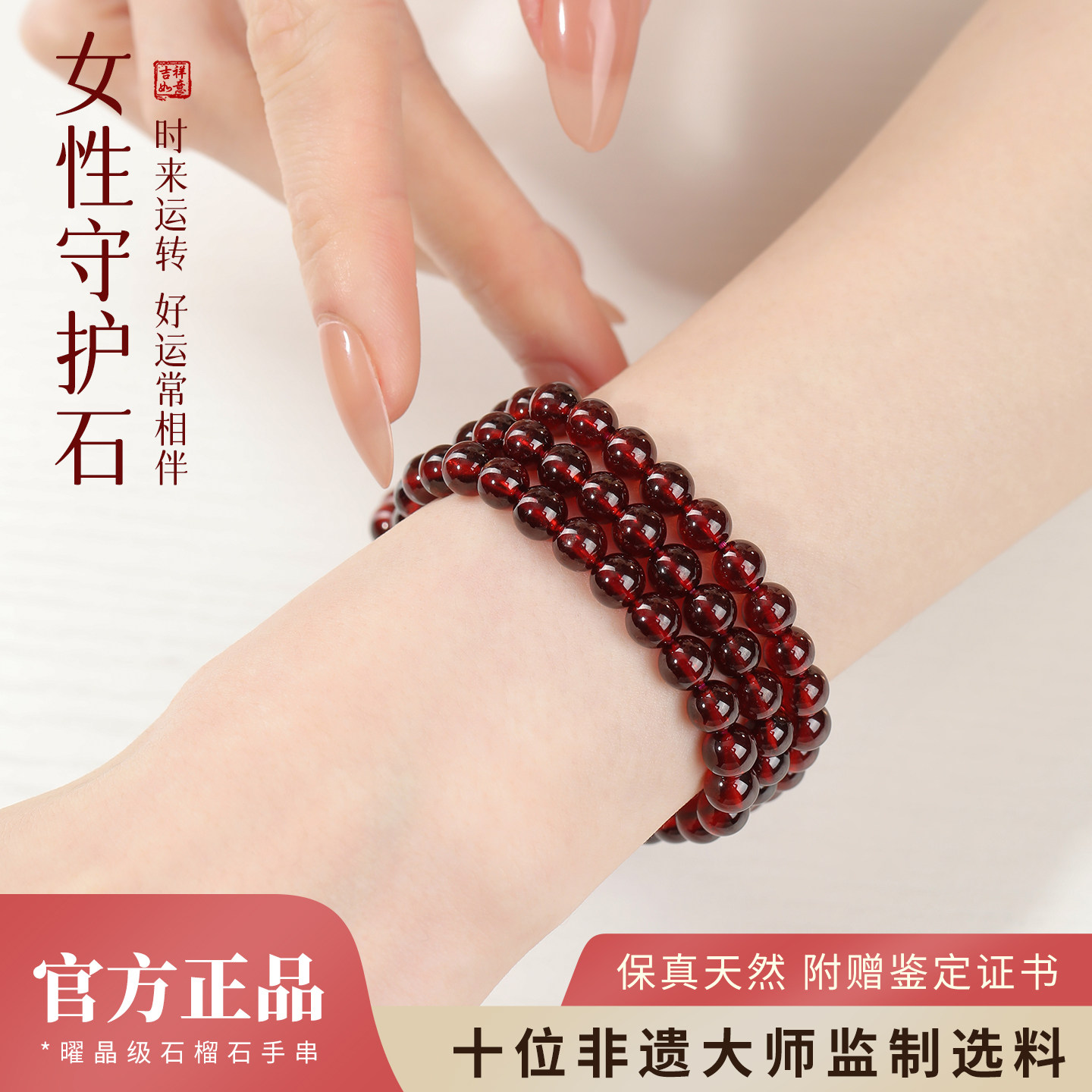 宫里上新石榴石手链官方旗舰店女天然红色手串多圈新年礼物送妈妈