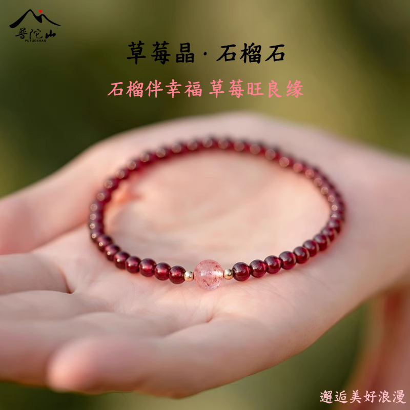 【普陀山文创集】天然多圈石榴石手串草莓水晶链女本命年红送礼物