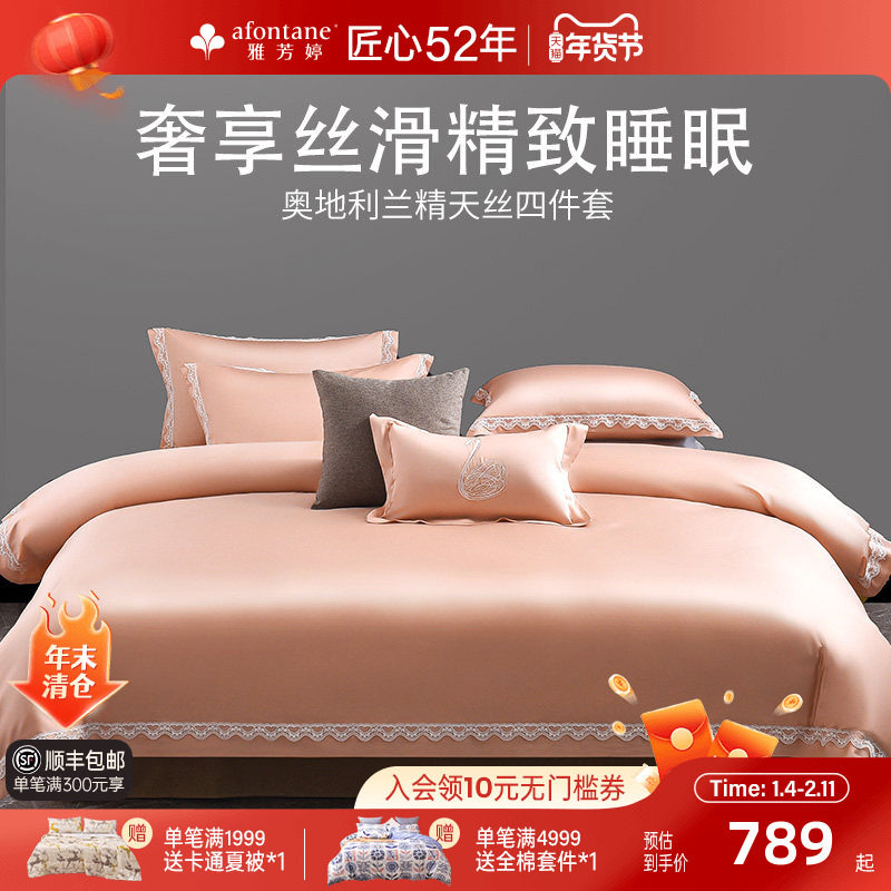 【清仓】雅芳婷天丝纯色高档床笠式四件套高端酒店素色套件60纱支