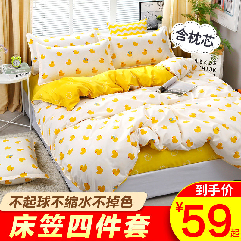 全棉可爱卡通四件套学生宿舍儿童三件套3纯棉床笠床单式被套床上4