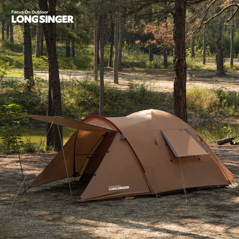 Longsinger龙行者3-4人双层户外野营防紫外线天幕帐篷防雨家庭帐