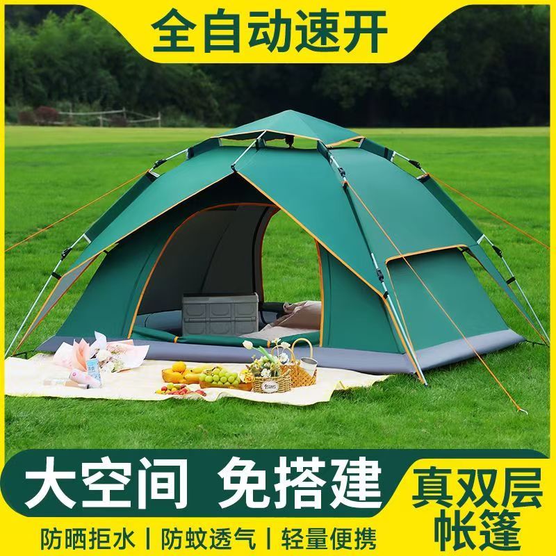 户外帐篷2-3-4人全自动双层免搭建速开露营野营室内野外钓鱼账篷