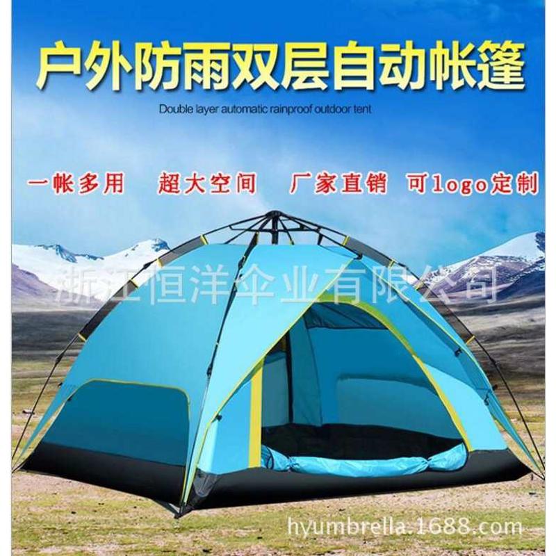 全自动户外3-4人双层帐篷牛津布家庭野餐便携式户外帐篷露营帐篷